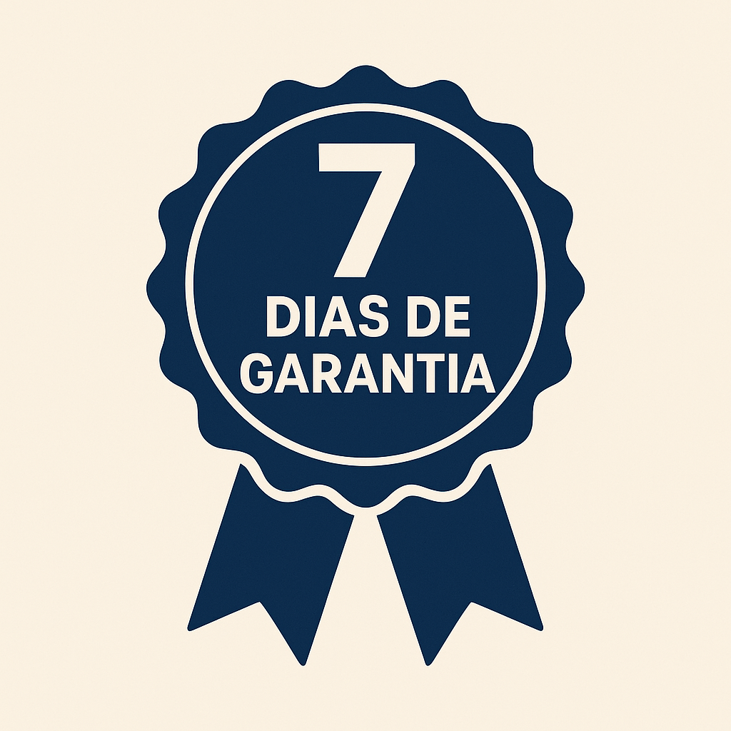 Tem 7 dias de garantia. Se por algum motivo não ficar satisfeito, devolvemos 100% do valor. Sem burocracias, sem riscos.